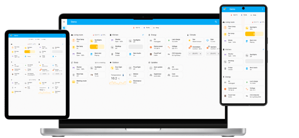 Control your home from any device — phone, tablet, desktop, or smartwatch.
